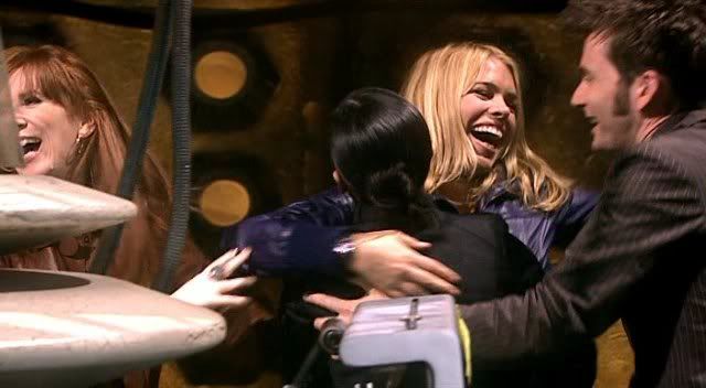 I noticed already that it is Donna who gives Rose all the happy explanations of why this is going to work. The Doctor seems to be focusing on how 10.2 is really HIM and needs her...even in this toss of the TARDIS bit...he's setting up the perfect fantasy for Rose. And we only have the hope that it is a fantasy for him, too...one he will dwell on and one day be rewarded for with children.